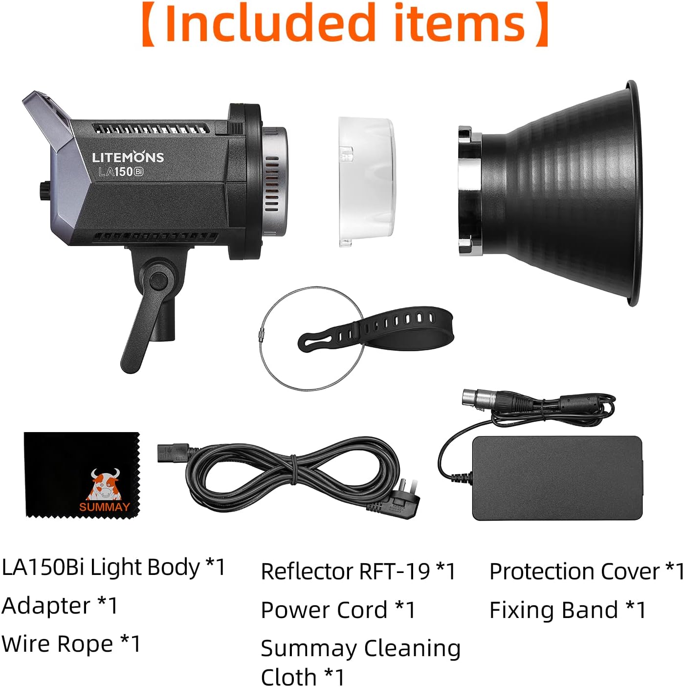 Color Temperature Adjustable: LA150Bi supports cool and warm color temperature adjustment (2800-6500K) to meet your shooting needs.With Dimming from 0% to 100%, you can achieve lighting flexibility in different scenes.