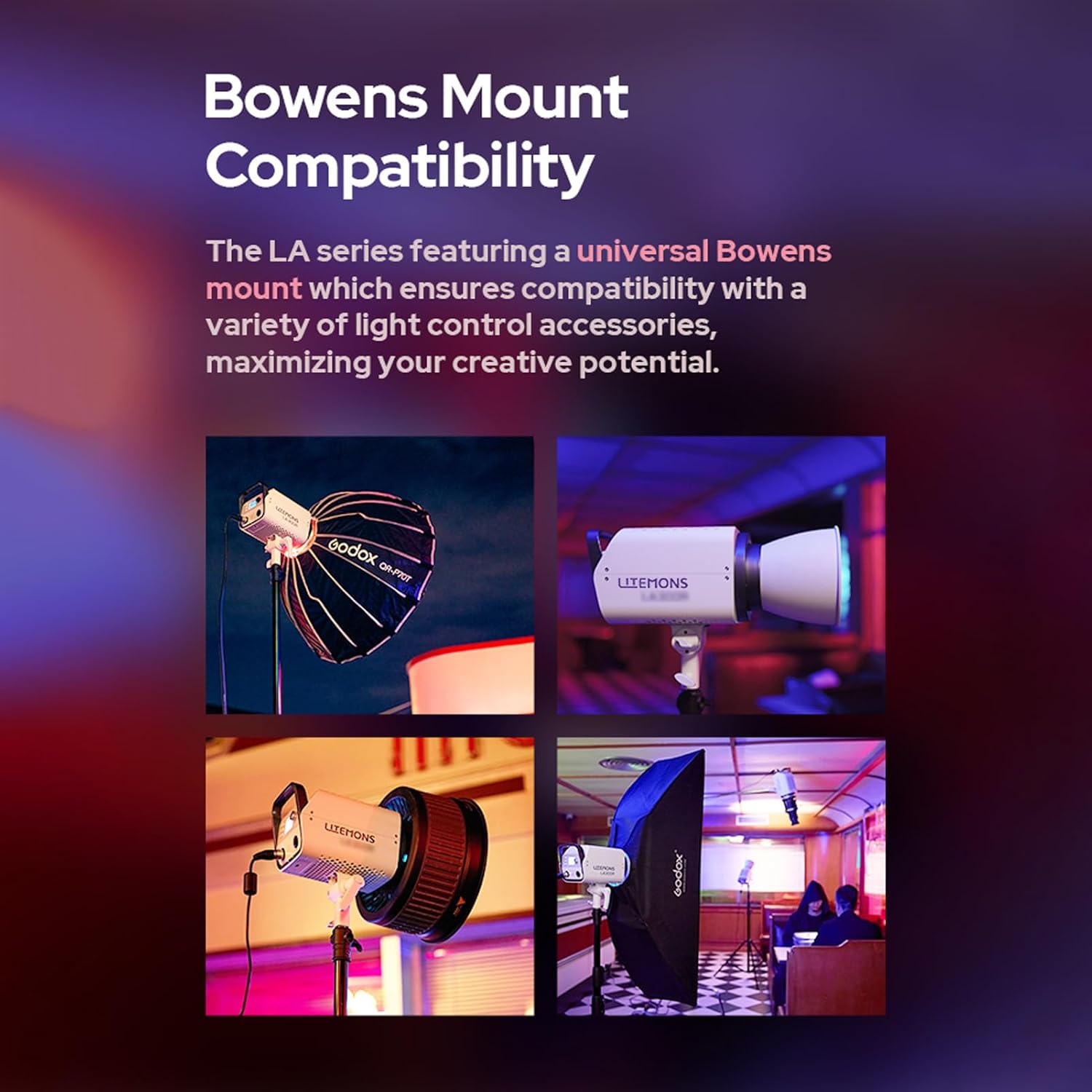 Bowens Mount Compatibility: Compatible with any Bowens mount light shapers, this LED photography light works perfectly with the Godox light shaping system and other mainstream modifiers in the market, exploring more light sculpting potential for your production