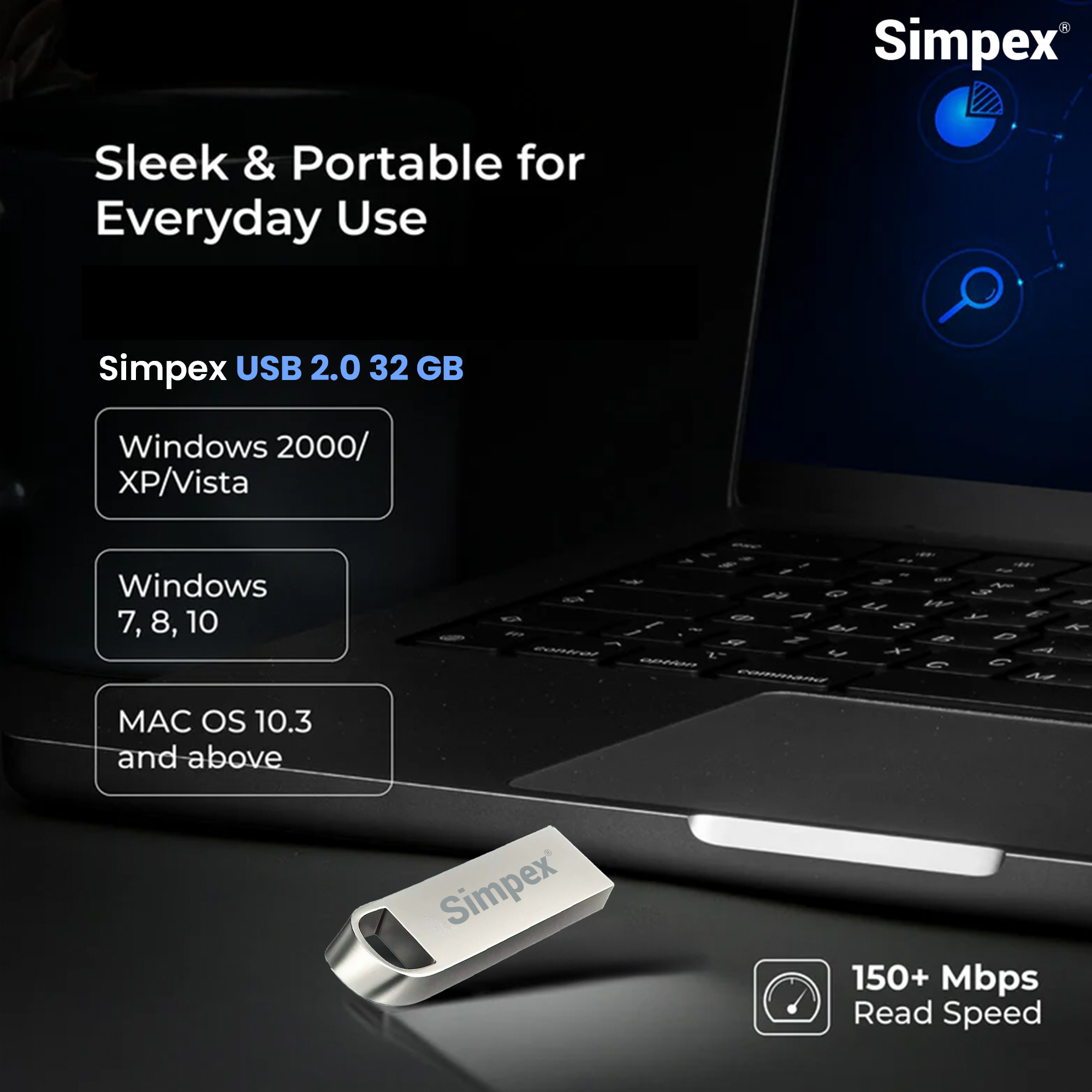 Versatile Compatibility: Simpex pendrive is incredibly versatile, such as Windows 2000 / XP and Vista, Windows 7, 8, 10 and operating systems 10.3 and above.