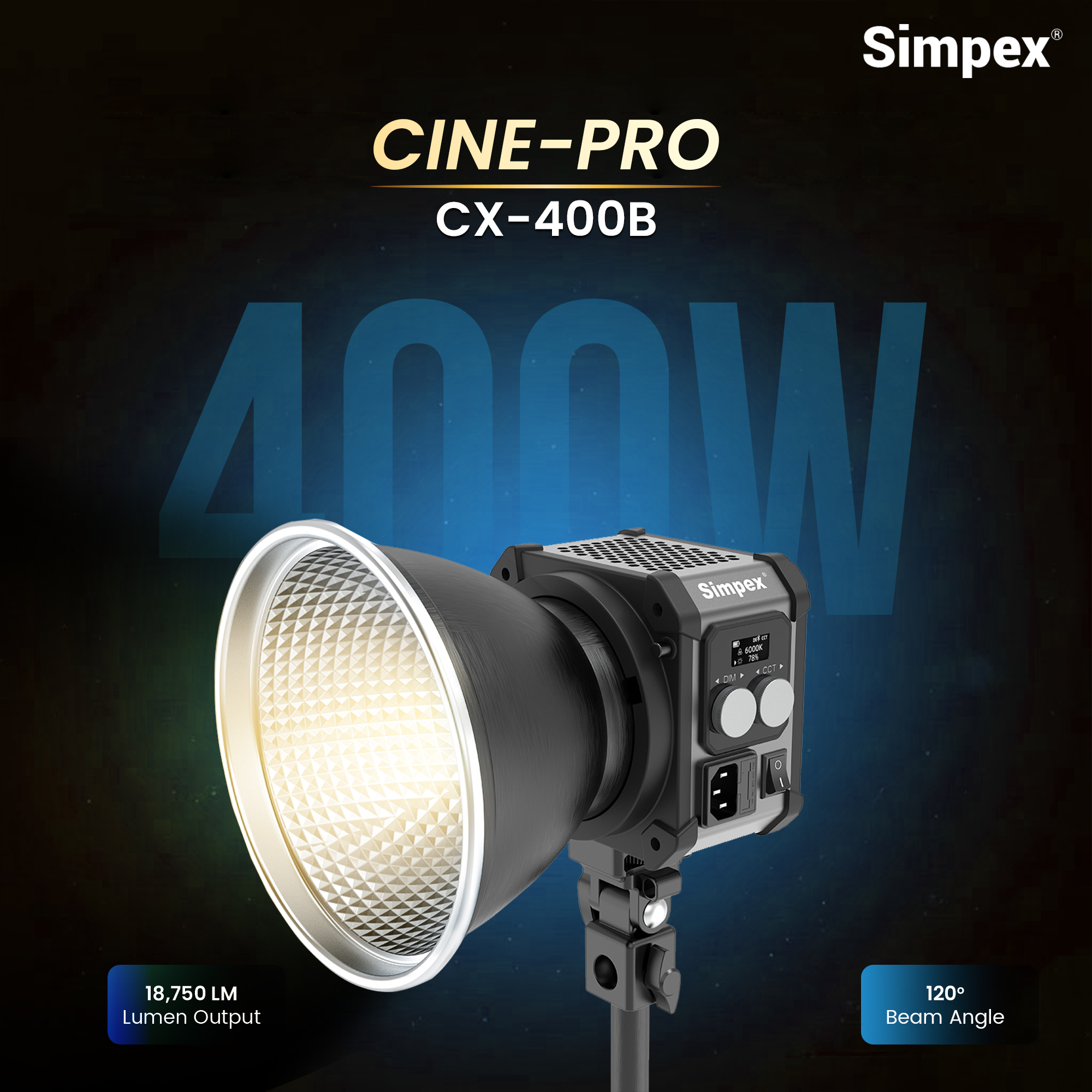 Simpex CINE PRO series CX-400 Bi ( 400W ) Dual Colour Continuous LED light, With App Control, Bowens Mount stylish design for Filmmakers.