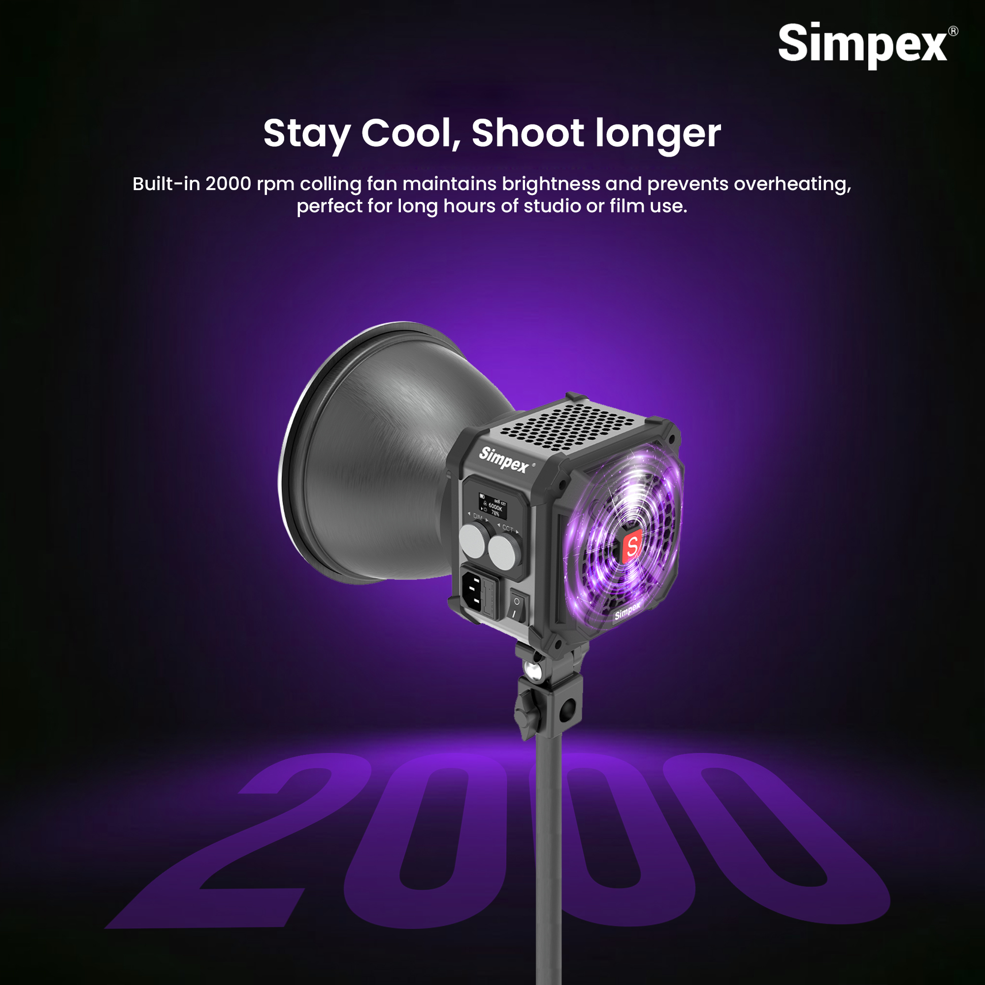 Advanced Cooling System with 2000 RPM Fan: Shoot longer without overheating thanks to the 2000 RPM cooling fan, which maintains steady performance even during extended filming sessions, ensuring consistent luminance and reliability.