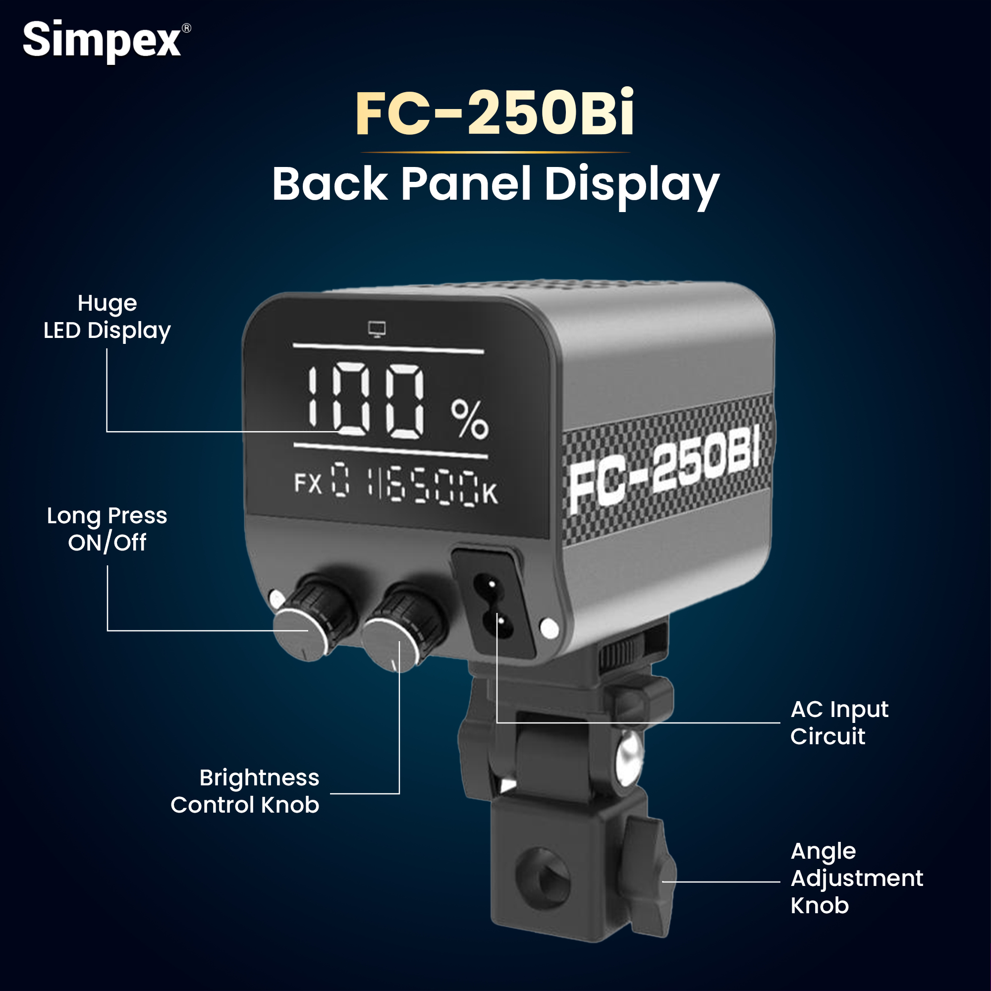 FC 250 bi is a latest entrant in Simpex lighting products, it is so light weight that is specially designed for creators in video production with compact studio space.