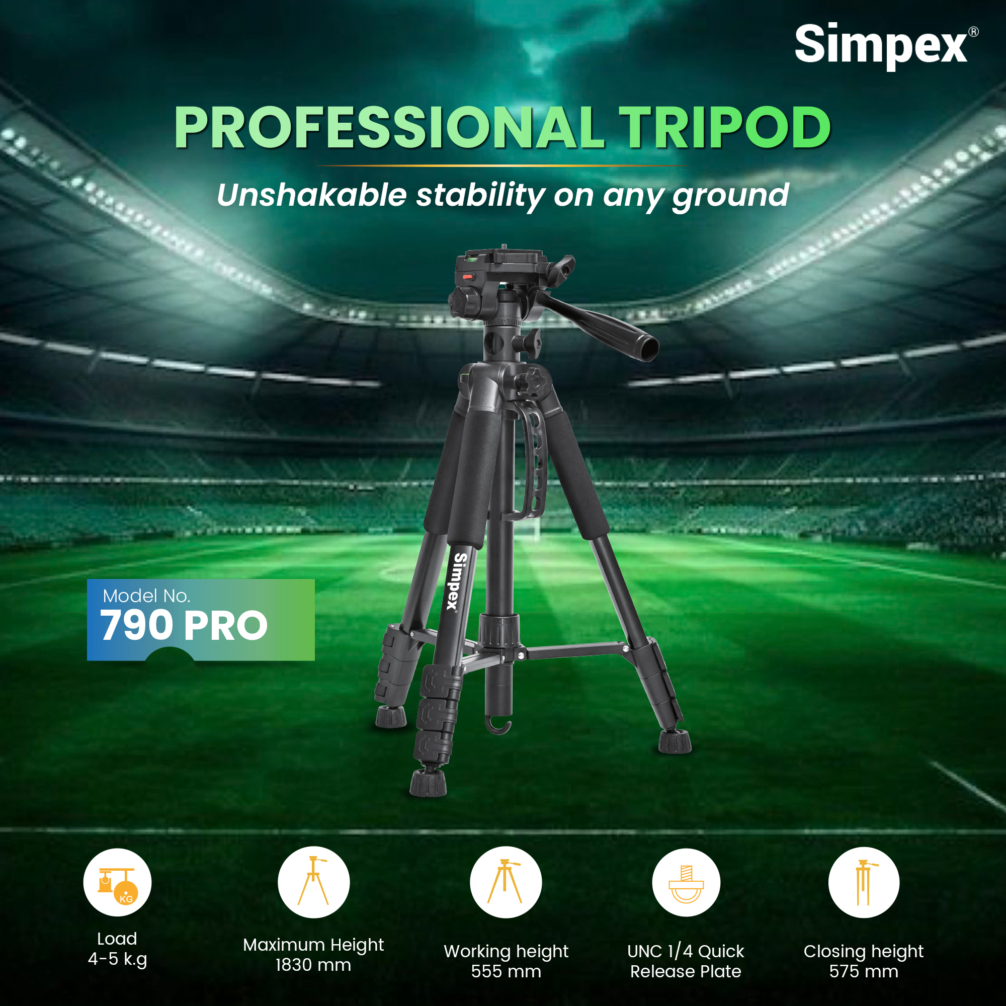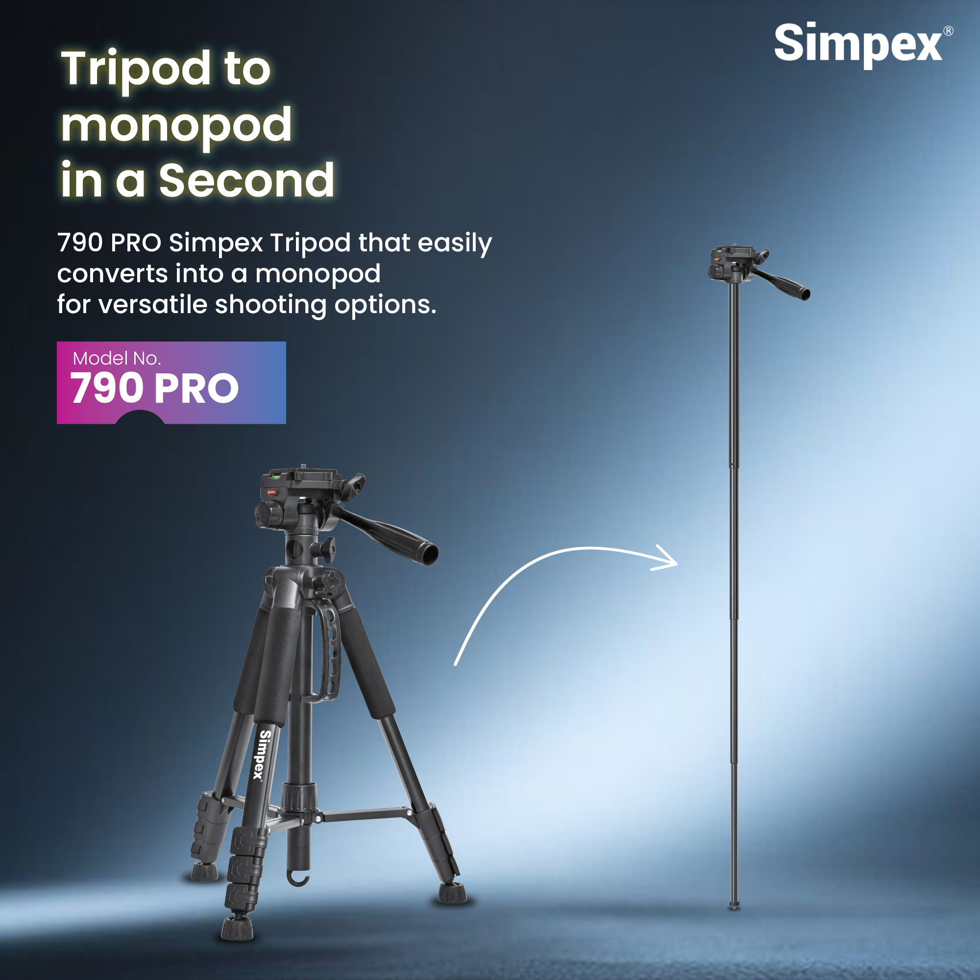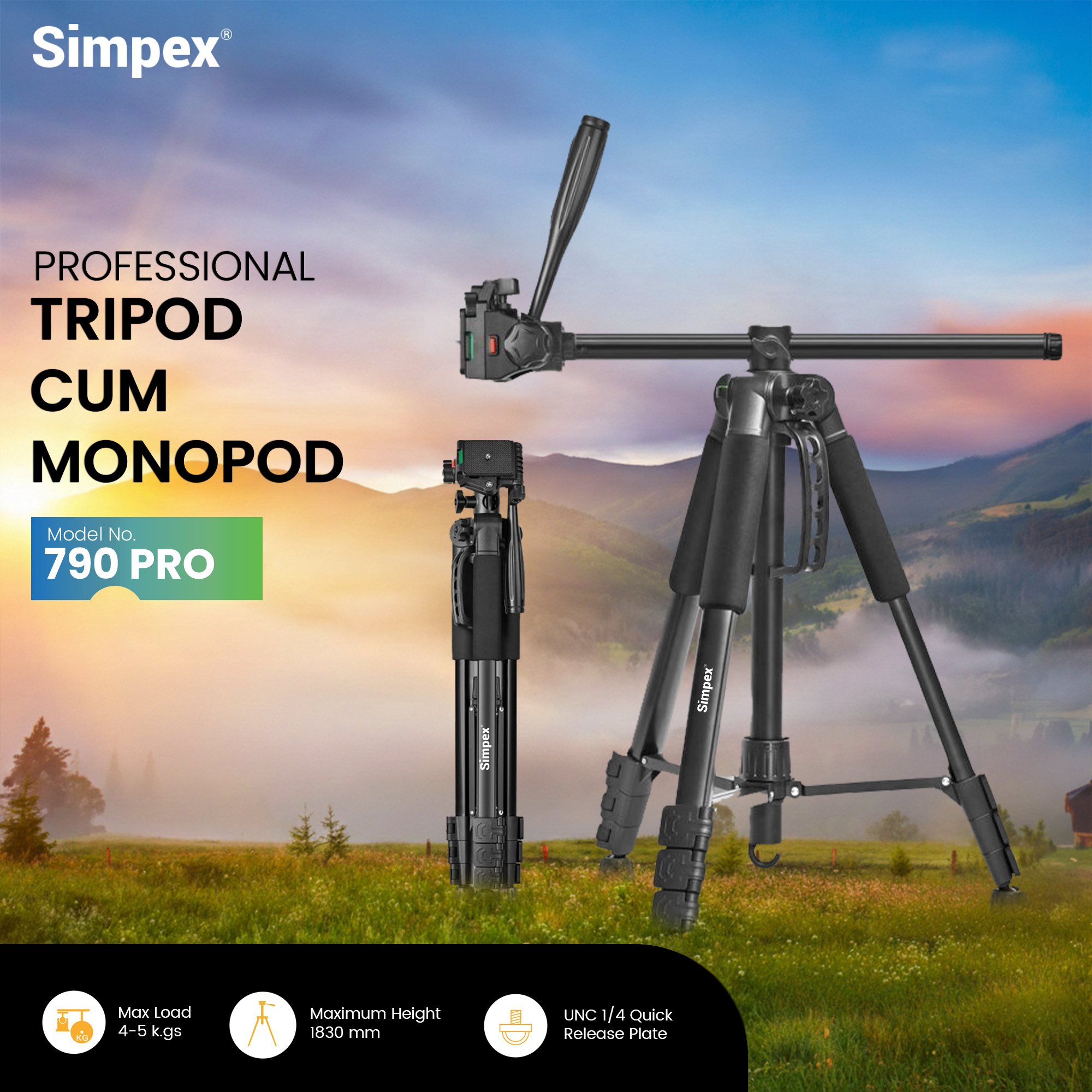 The Simpex 790 Pro is a versatile and heavy-duty imaging solution designed for creators who need both the stability of a tripod and the mobility of a monopod in a single package