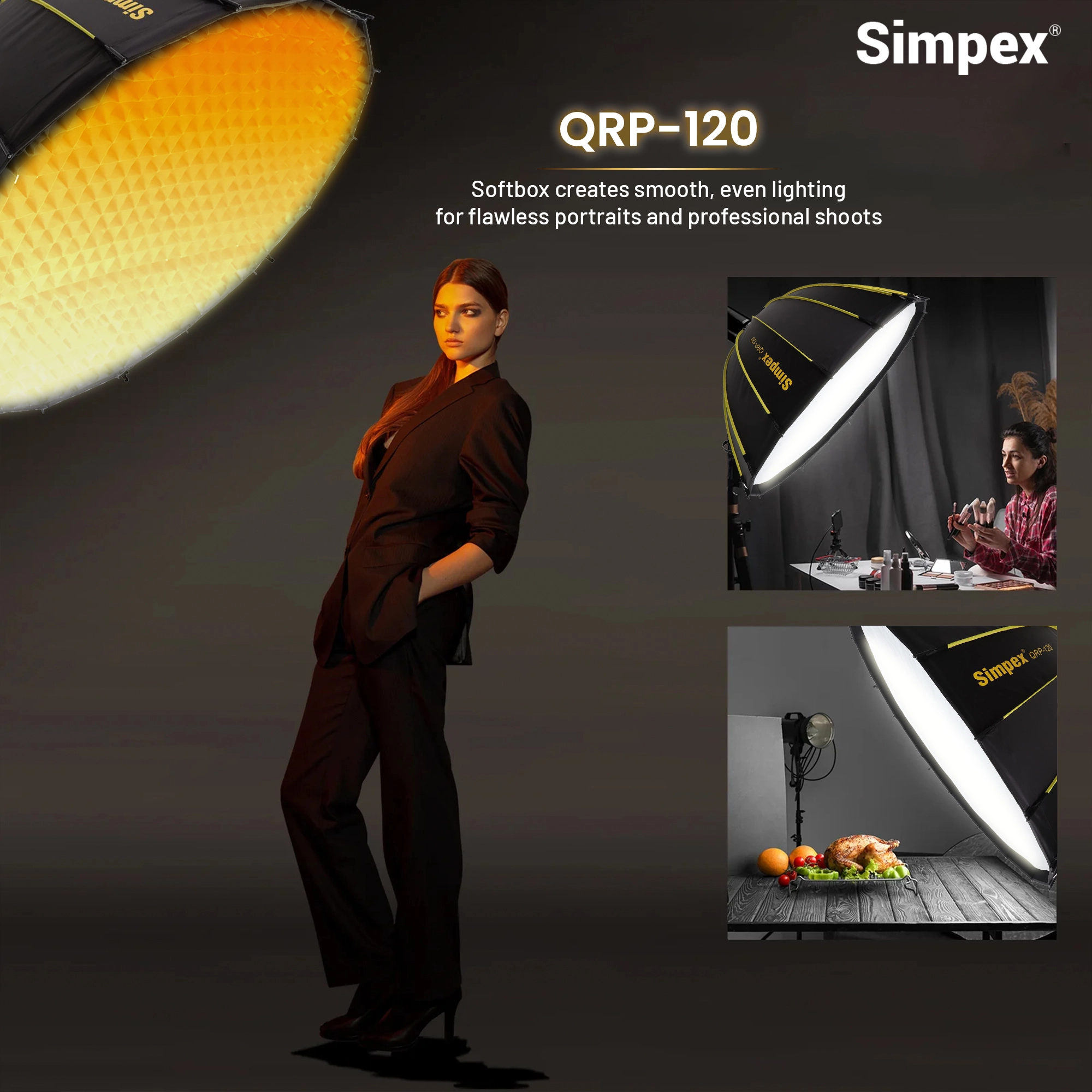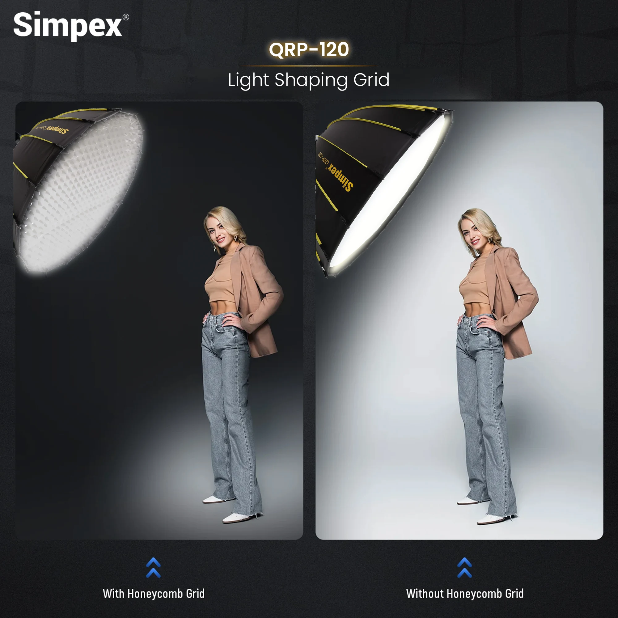 Simpex QRP-120 Deep Octa Quick Release Parablic Softbox with honey comb grid, Compatible with all Bowens mount lights.