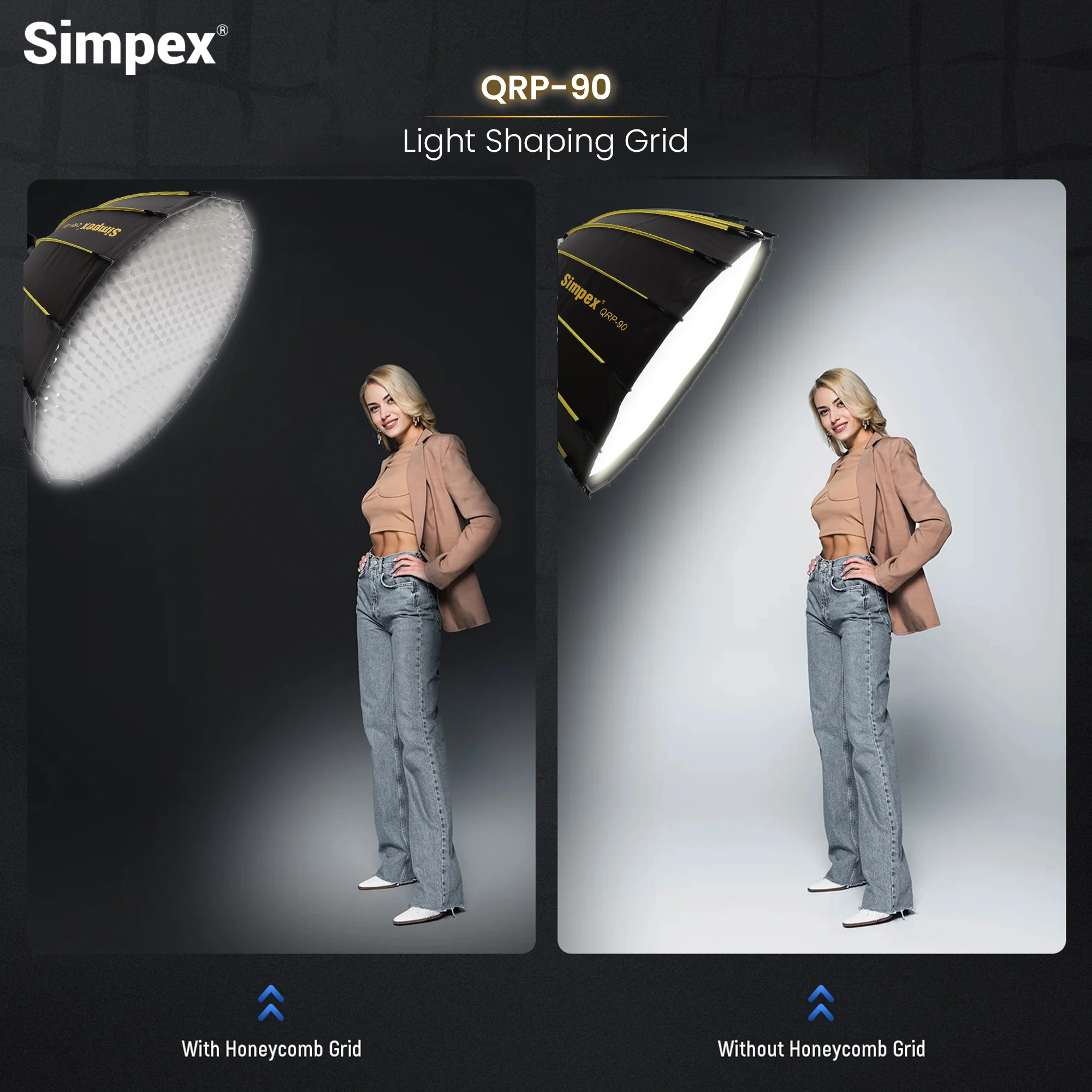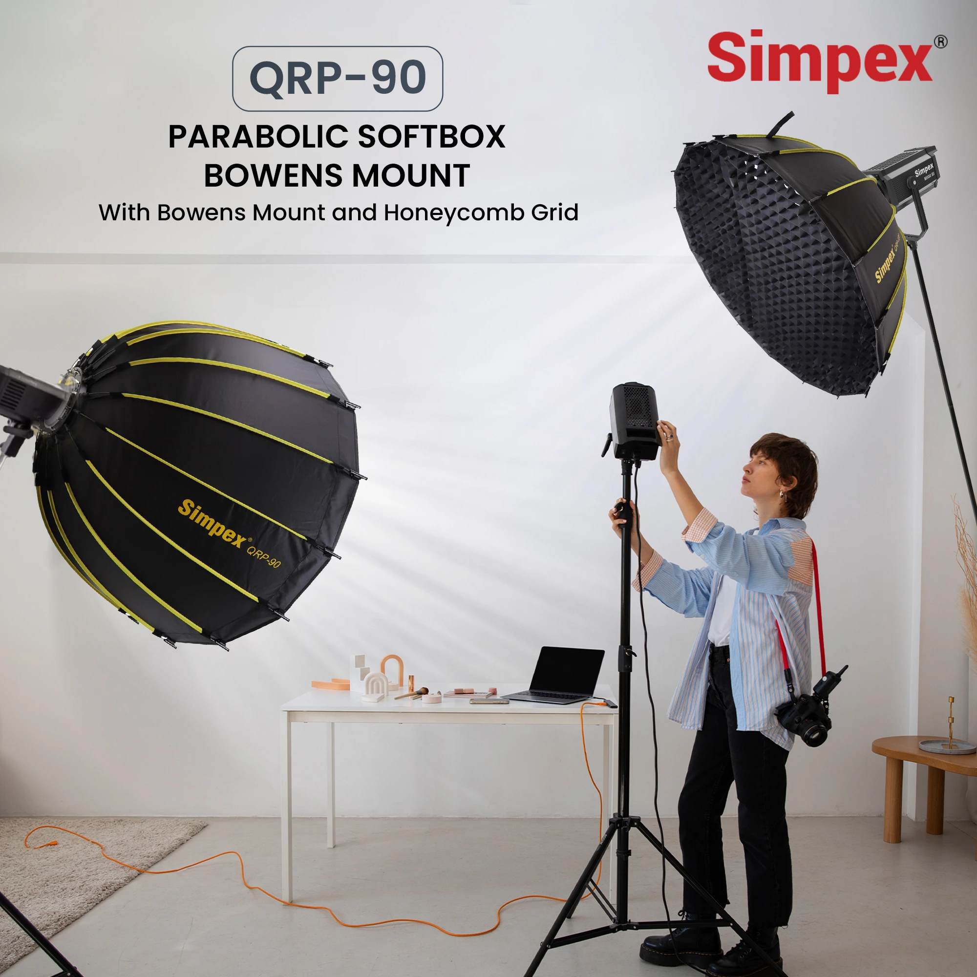 Simpex QRP-90 Deep Octa Quick Release Parablic Softbox with honey comb grid, Compatible with all Bowens mount lights.