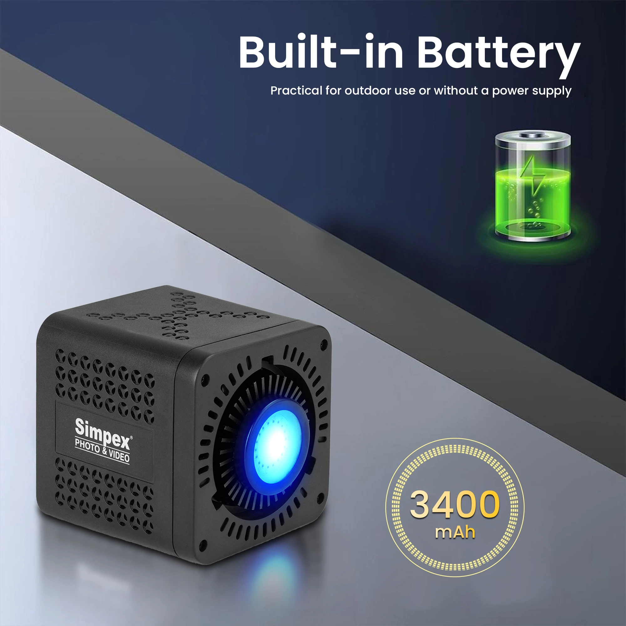 Simpex SLB 120R portable RGB version palm size continuous LED light with in-built battery