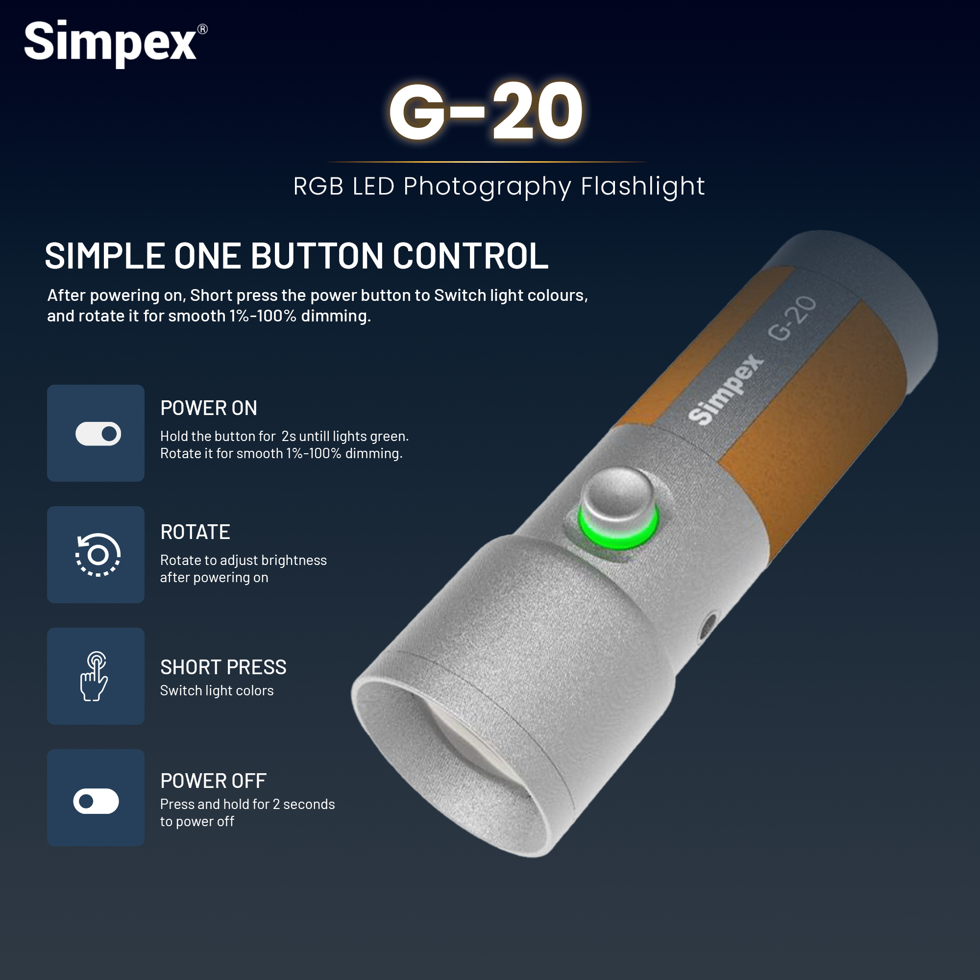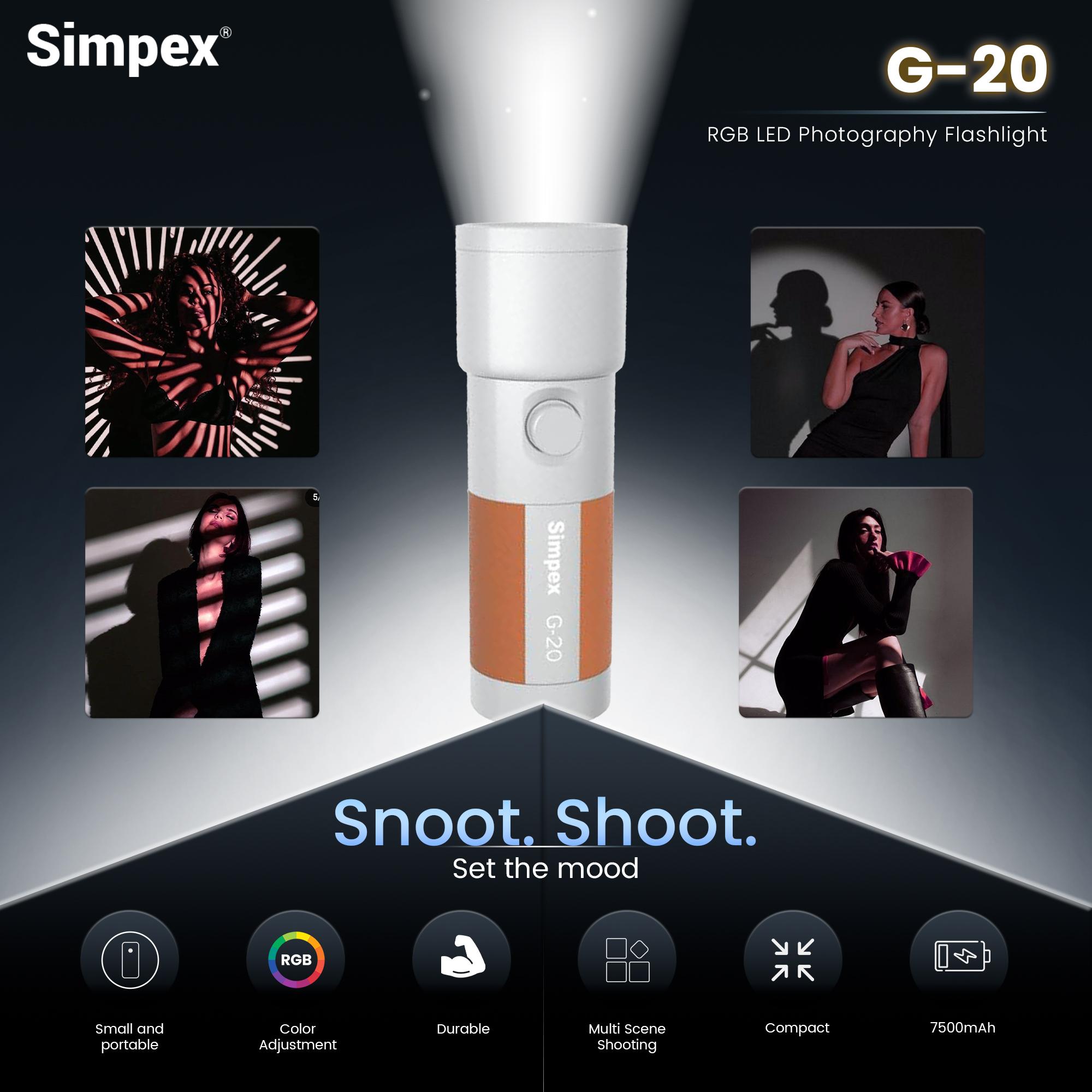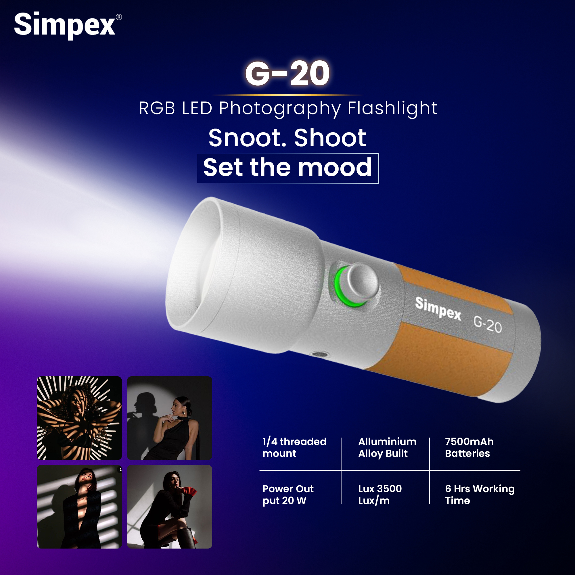 Made with Creators in Mind The Simpex G-20 Flash is ideal for photographers, filmmakers, vloggers, and content creators seeking high-quality portable lighting because it is small, sturdy, and simple to mount.